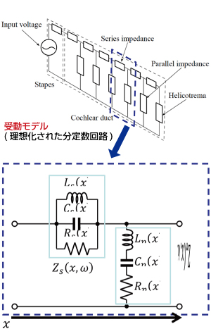蝸牛は聴覚系の抹消器官で、音を神経信号に変換する重要な器官です。この蝸牛の特性を良く再現する数理モデルとして、無反射伝送線路モデルが提案されています。しかし、その回路パラメータ間の関係が複雑なため、これらを定量的に設計する方法がありませんでした。